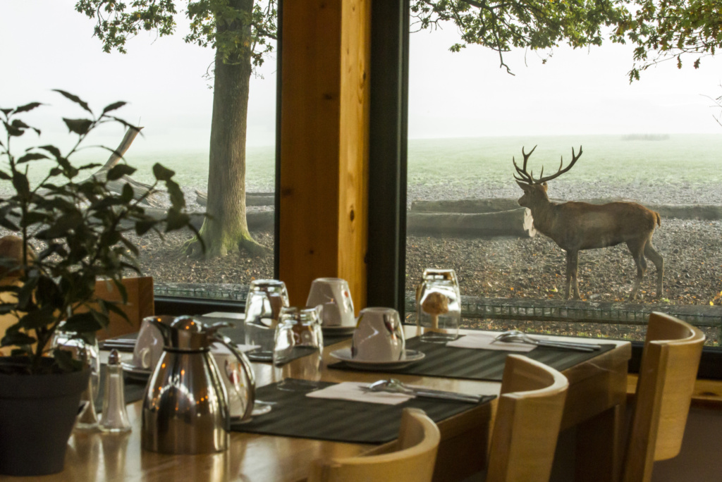 Pour le déjeuner, un menu en trois temps, accompagné de vin, vous est servi au Restaurant Panoramique, privatisé pour l’occasion. Avec une vue imprenable sur la plaine des cervidés, ce cadre offre une pause déjeuner gourmande et poétique. C’est le moment pour vos équipes de se ressourcer tout en partageant avec leurs collègues face à un superbe paysage.