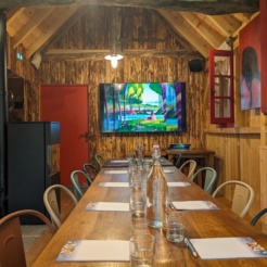 Votre animateur vous raccompagne à la Grange du Nouveau Monde, votre cocon privatisé pour la soirée. Inspiré d’une grange nord américaine, cet espace chaleureux est équipé d’un billard, d’un espace lounge et d’un feu de camp. Le lieu idéal pour